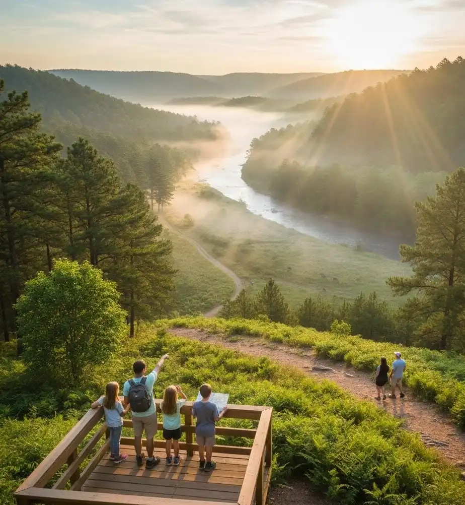 Early in the morning, you can see mist rising from the Mountain Fork River, creating a peaceful and almost cinematic atmosphere. I even spotted deer quietly moving through the trees before the crowds arrived. The mix of dense forest, flowing water, and wildlife makes this park unforgettable.